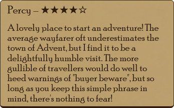Today, Advent's remarkable foresight has lead to vocational expertise and cartography extraordinaire! Gone are the days where a weary wanderer must ask where in the world to lay their head tonight. Instead, they ask for Lovely Lodgings.